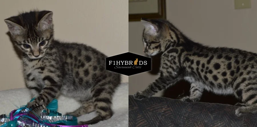 Bottle raised male F2 Savannah Kitten out of Frosting. Too young for temperament details.